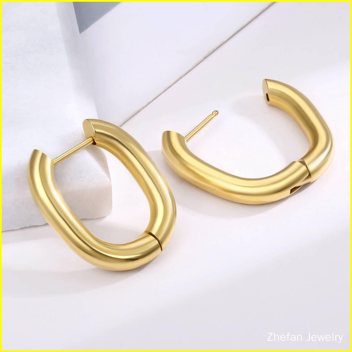 U Shape Geometric Hugggie Earrings-18K Gold