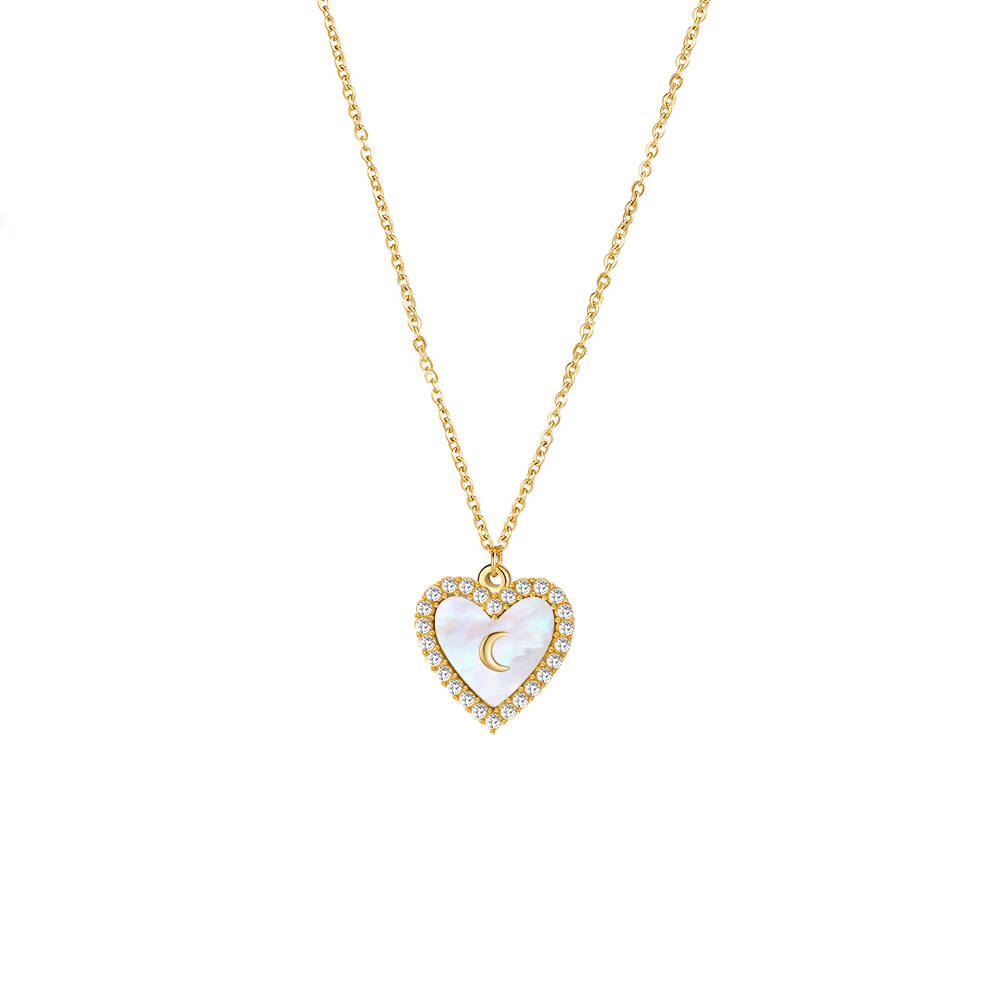 Elevate your style with our stunning Mother of Pearl Necklace, intricately crafted with 18K gold plating and embellished with shimmering zirconia stones in a charming heart design. Our jewelry showcases the finest materials and craftsmanship, reflecting our expertise in customization and manufacturing capabilities. As a leading factory with wholesale options, we offer brass and 925 silver materials for your personalized creations. The minimum order quantity per style is 60 pieces. Let your unique style shine with our exquisite collection.