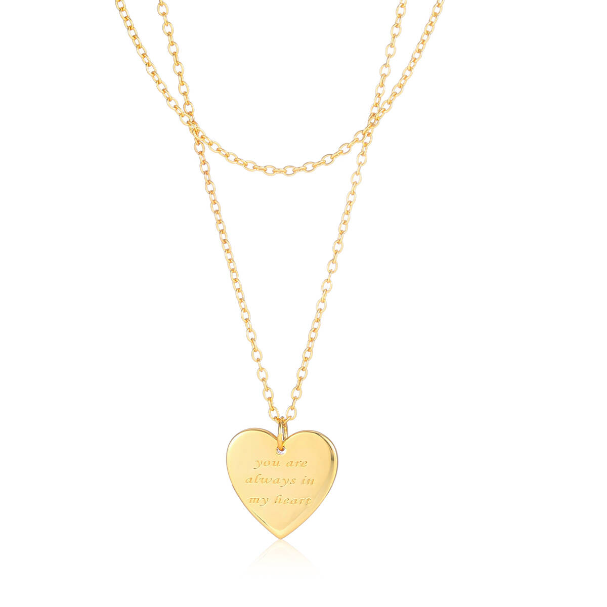 Engraved Layer Chain Heart Necklace - Brass